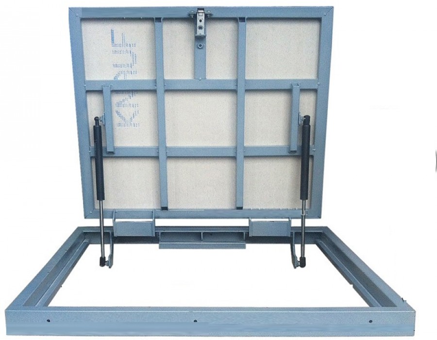 Перед покрытием эмалью шлифуем окалины и наплывы сварки болгаркой УШМ. Газовые амортизаторы выбираются индивидуально по мощности к размеру дверцы. Таким образом, Вы приобретаете продукт промышленной сборки с плавным ходом створки 1130х885 мм. При выборе данного типоразмера обратите внимание на конечные размеры проема в свету 1110х880 мм. Максимальная распределенная нагрузка на облицованную дверь составляет 120 кг/м²