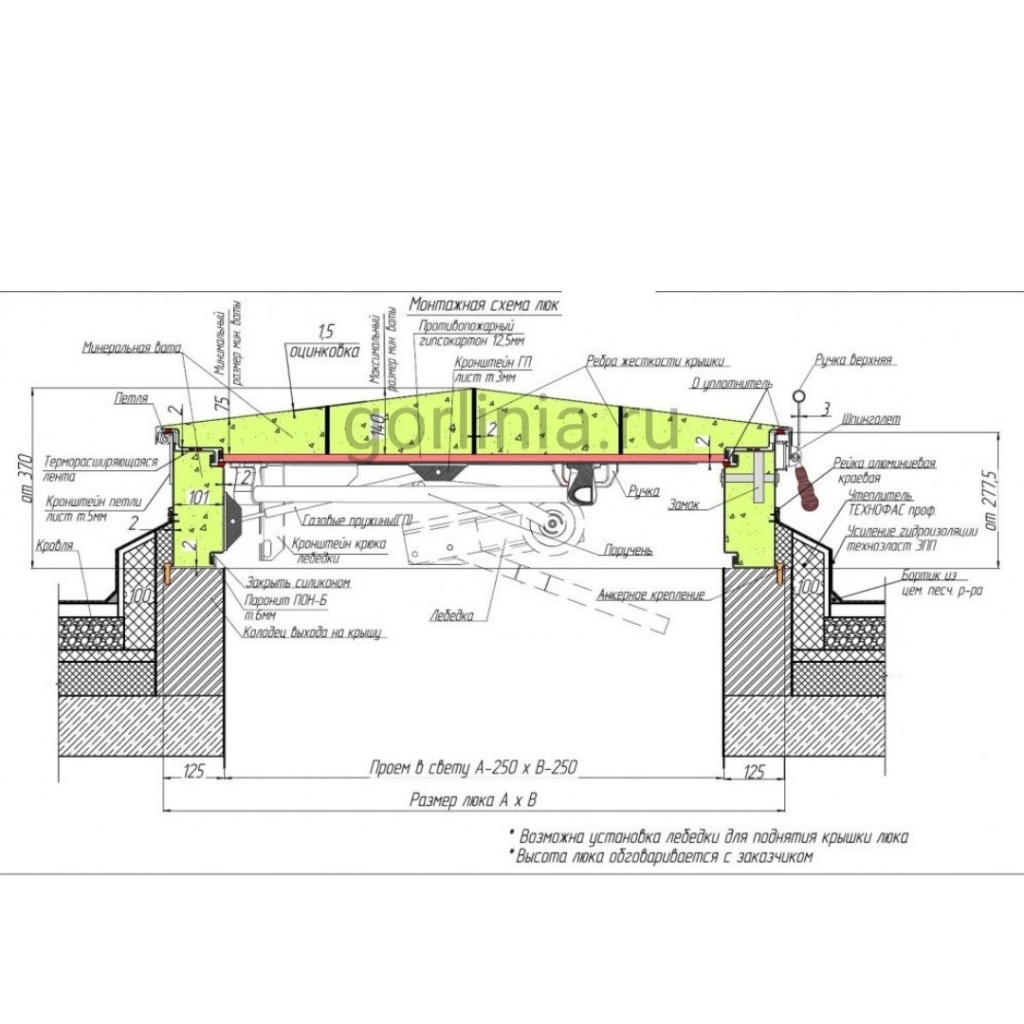 Подготовка под класс огнестойкости люка выхода на кровлю 1,2х1 2-го типа EI60: