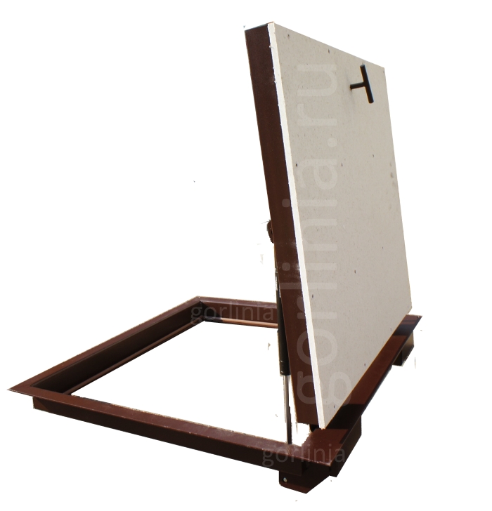 в проем 70х60 с устройством дополнительной опоры из уголка, профиля, бруска;